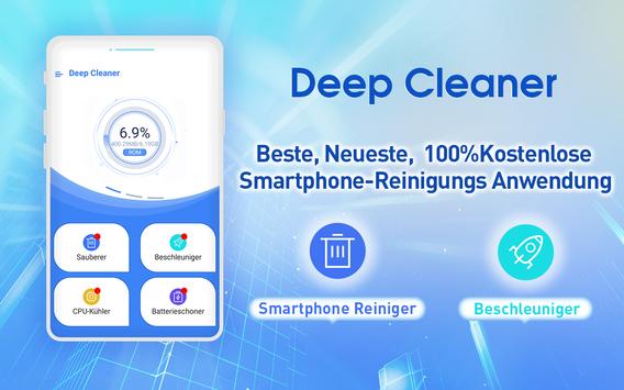 Deep Cleaner - Telefonreiniger, Beschleuniger, Optimierer ist ein Android Cache reiniger für Mobiltelefone, Geschwindigkeitsverstärker, Speicherbeschleuniger, CPU-Kühler, Batteriesparmodus, schneller Ram Reiniger und Junk-Datei Reiniger Meister. Deep Cleaner ist ein Muss Android Meister und Telefonbeschleuniger Werkzeug.