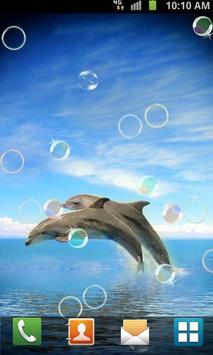 Some types of bubbles move slowly front of the dolphin images, you can use as wallpaper with blank select at settings or you can use it as live wallpaper with random option or chosen one type of bubbles.