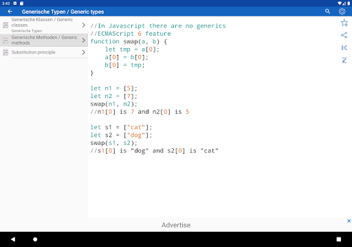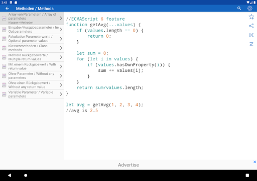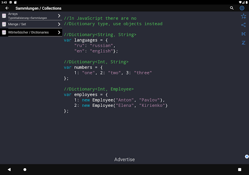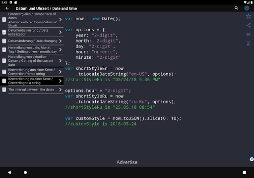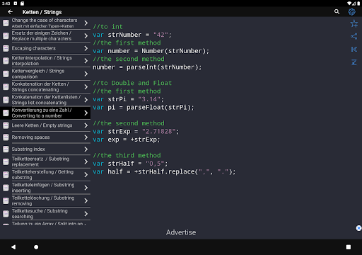 ✓ Die Anwendung ist ein gutes Werkzeug während der Prüfung oder der Vorbereitung auf das Interview, da sie einen Verweis auf häufig verwendete Operationen in verschiedenen Programmiersprachen enthält.