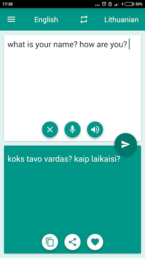 Dieser kostenlose Übersetzer kann schnell von Litauisch auf Englisch und Englisch auf litauische (lietuvių-anglų vertėjas) Wörter sowie vollständige Sätze übersetzen.Sofortige Übersetzung und die volle Gültigkeit der Wörter.