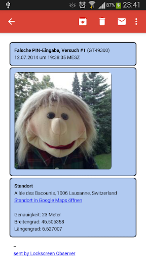 Es ist auch möglich, bei der Eingabe der richtigen PIN ein Foto zu schießen. Das funktioniert aber nur, wenn vorher mindestens eine falsche PIN eingegeben wurde. Hat also jemand nach mehreren Versuchen die richtige PIN herausgefunden, bekommst Du ein Foto mit dem Hinweis, dass sich jemand erfolgreich eingeloggt hat.