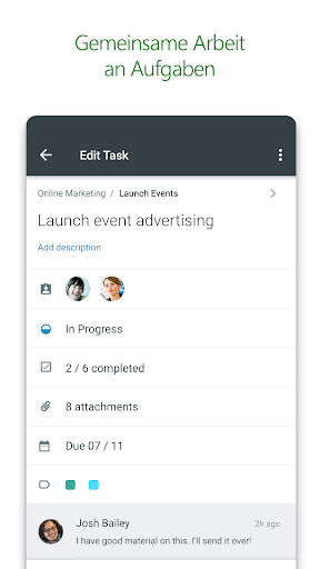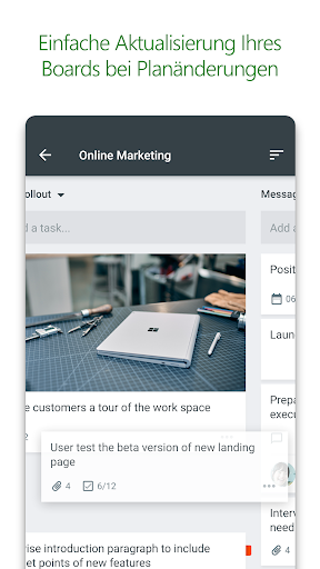 Planer funktioniert auf allen Ihren Geräten. Und mit Planer ist jeder immer auf dem gleichen Stand. Setzen Sie Unterhaltungen fort, und aktualisieren Sie Aufgaben, gleich, ob Sie unterwegs oder an Ihrem Schreibtisch sind.