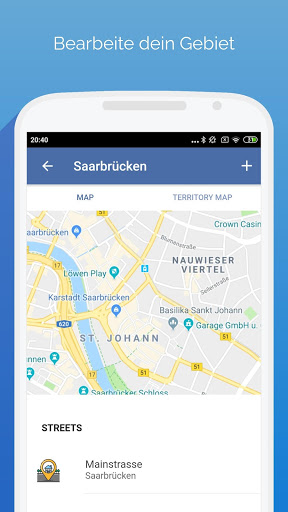 • Innovatives Kachel-System, um Gebiete zu bearbeiten und automatisches Hinzufügen eines Besuchs, wenn jemand nochmal besucht werden soll