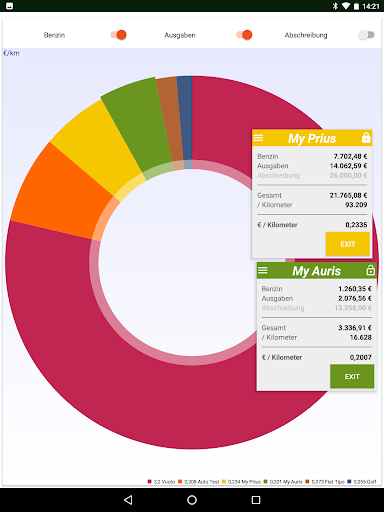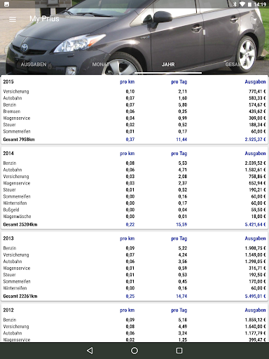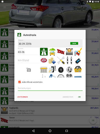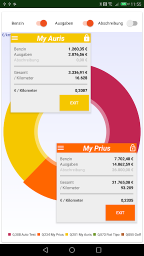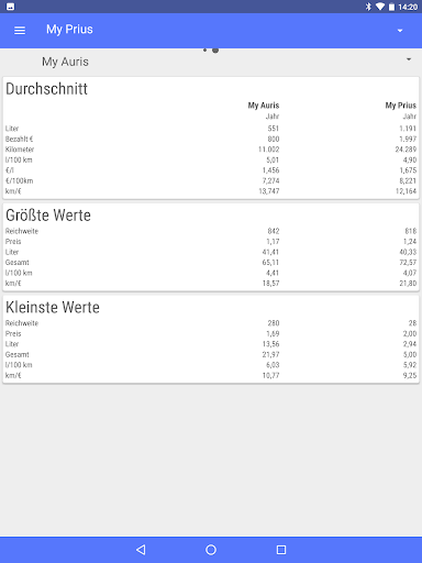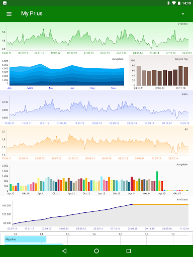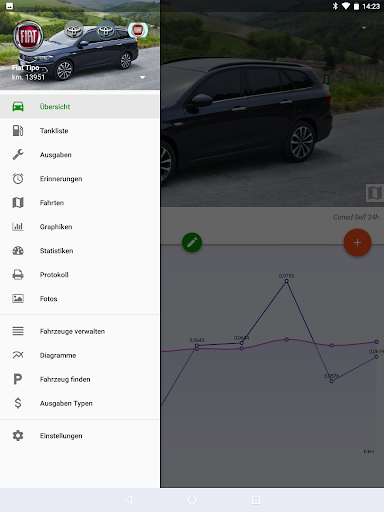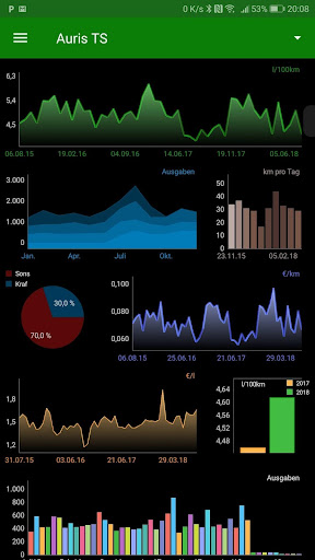 - Datenimport von MYFuelLog, Fuelio, aCar, My Cars, Road trip (iOS), Fuel buddy, Carango, Drivvo und CSV