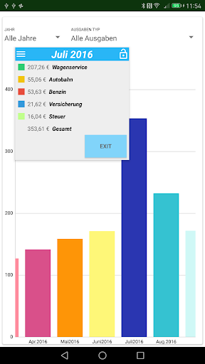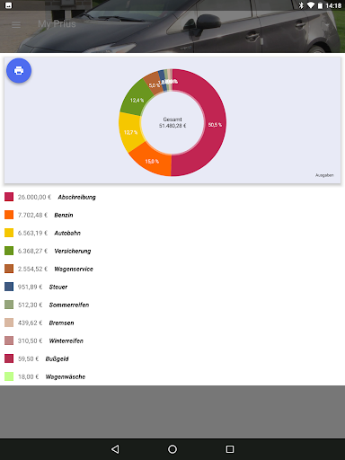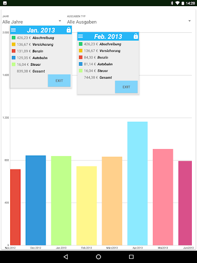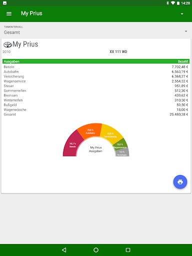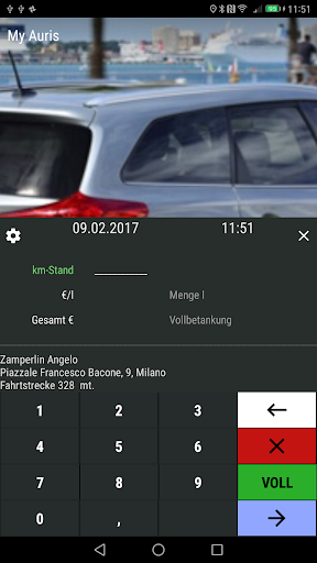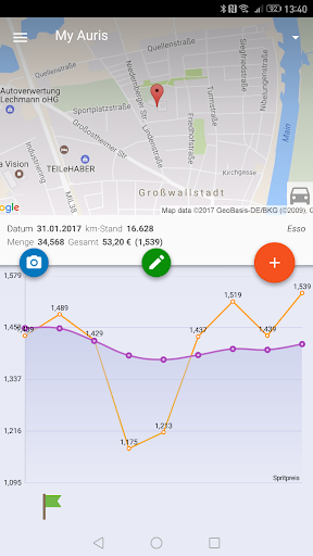 Zeichnen Sie Ihre Betankungen und Ausgaben für Ihr Fahrzeug bequem auf. Die Eingabe ist schnell und einfach. Es zeichnet die Zeit und den Ort auf. Personalisieren Sie den Hauptbildschirm mit dem Logo Ihres Fahrzeugs und einem Namen.