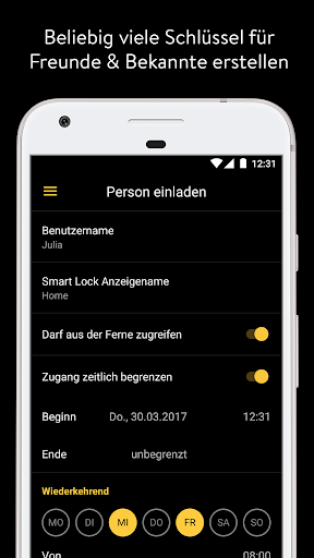 • Vergib digitale Zutrittsberechtigungen via Nuki App an Freunde & Bekannte und teile diese einfach per SMS/WhatsApp.