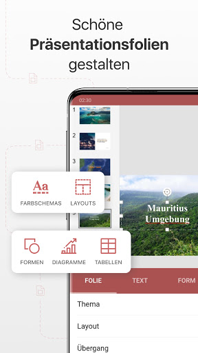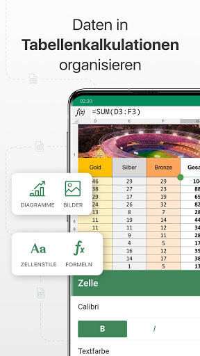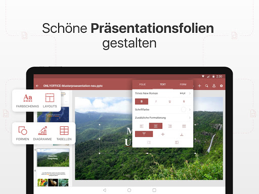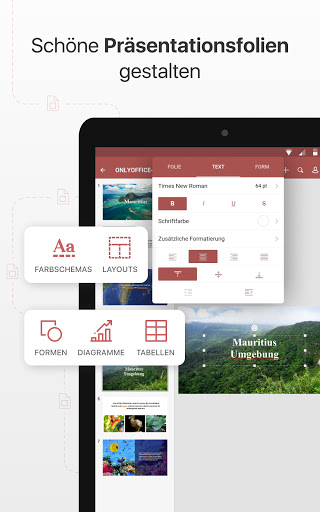 Bearbeiten Sie Textdokumente und Kalkulationstabellen, öffnen Sie Präsentationen, PDF-, Foto- und Videodateien. Man kann Dateien sortieren, umbenennen, verschieben und kopieren sowie Ordner erstellen. Konvertieren und Exportieren von Dateien ist auch verfügbar.