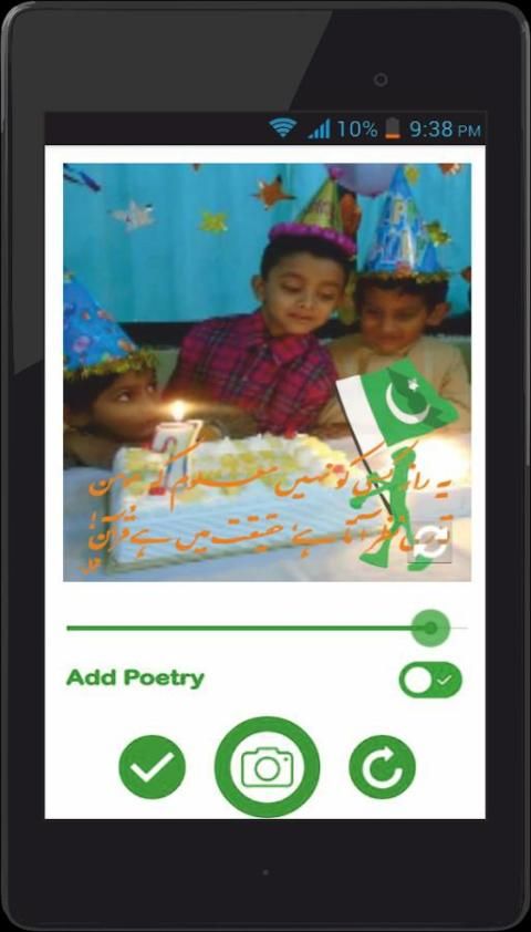 If you want to show your love for Pakistan then this application will allow you to mix different Pakistani flag filters with your own photo and different stanzas of Iqbal Poetry and miscellaneous poetry included in the application. You can show patriotism by editing photo and sharing on social media like Facebook, Instagram etc.