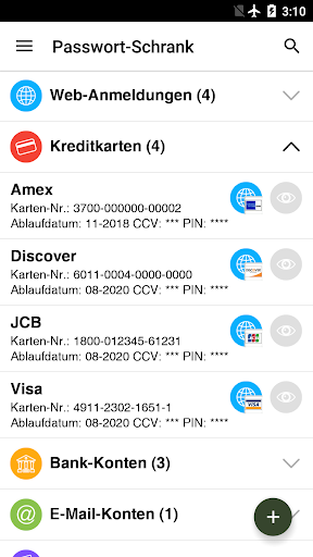 Passwort-Schrank ist ein Passwort-Manager und Datentresor App, die sicher und zuverlässig speichert Ihre sensiblen Daten bequem auf Ihrem Handy oder Tablet.