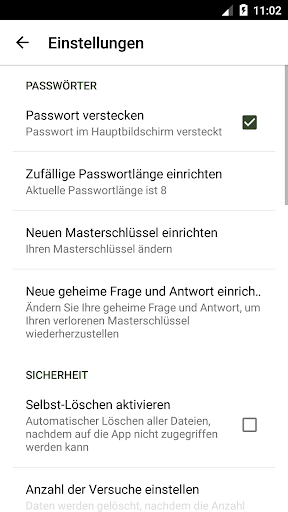 Passwort-Schrank der sicheren Datenbank kann auch selbst löschen nach mehreren gescheiterten Versuchen programmiert werden.