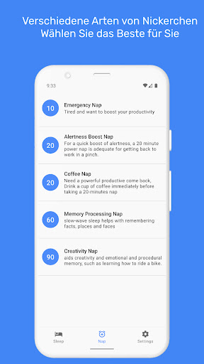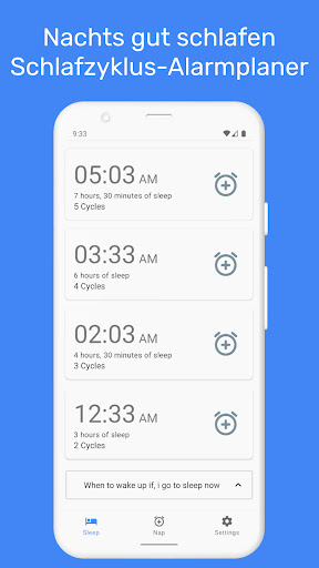 Die App hilft Ihnen zu berechnen, wann Sie aufwachen oder einschlafen müssen, um effizient einzuschlafen und sich großartig zu fühlen.