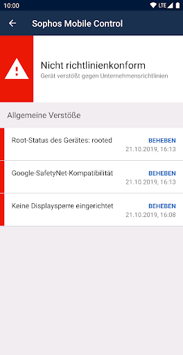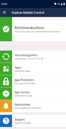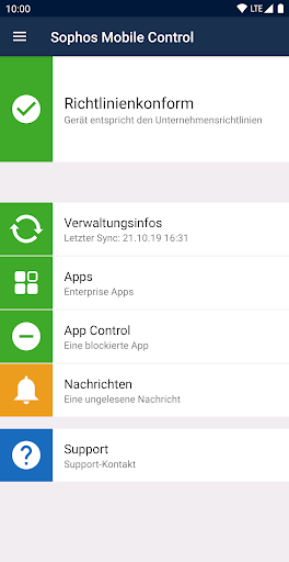 WICHTIG: Diese App funktioniert nur, wenn die passende Sophos-Verwaltungs-Konsole vorhanden ist. Installieren Sie die App nur, wenn Sie von Ihrem Unternehmen dazu aufgefordert werden.