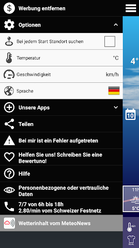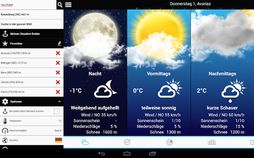 - Detaillierte Wettervorhersage in Stundenschritten in der Schweiz, Frankreich und Belgien
