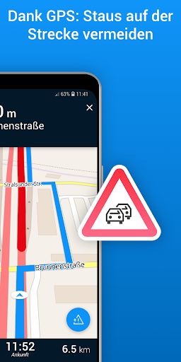 - Sehen Sie anhand der Farbcodes grün-orange-rot, auf welchen Straßen der Verkehr fließt oder gestört ist und welche Straßen gesperrt sind.