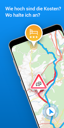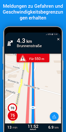 - Warnungen: Gefahrenzonen (mehr als 30000 in Europa) und Verkehrsvorkommnisse in Echtzeit (Staus, Baustellen, Behinderungen, Verkehrslage und –informationen für Straßen und Autobahnen)
