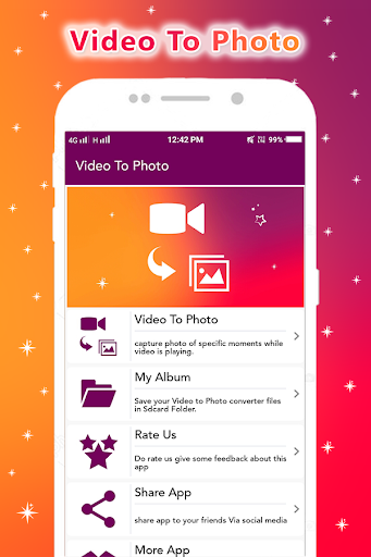 Video zu Photo Converter App, um Bilder von Ihrem Lieblingsvideo aufzunehmen. Partei, um ein anderes Video zu nehmen, und auch Ihr Lebensmoment, um ein Video zu sparen.