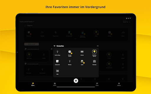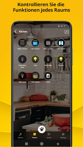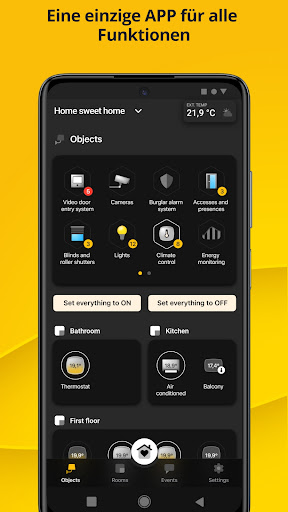 Die App VIEW kann lokal sowie entfernt folgende Funktionen verwalten: Lichter, Vorhänge und Rollläden, Klima, Strom (Verbrauch, Erzeugung und Schutzfunktion gegen Stromausfälle), Musik und Audio, Videosprechanlagen, Einbruchssicherung, Kameras, Bewässerung, Sensoren/Kontakte (z.B. für technische Alarme), ausgereifte logische Programme und Szenarien für die zentrale Kontrolle sämtlicher intelligenten Funktionen. All diese Funktionen lassen sich auch über die intelligenten Lautsprecher verwalten!