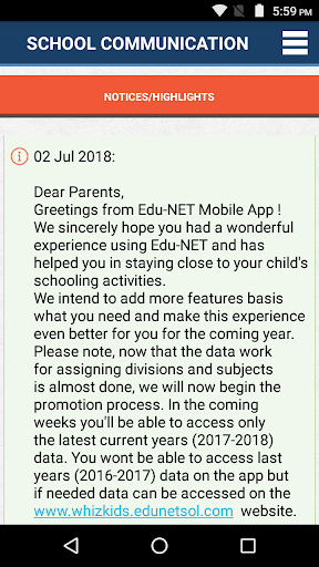 d) Parents get a daily/weekly/monthly update on their mobile as well their login gateways online.