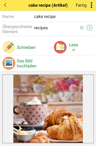 Alle Informationen werden als Baum gespeichert und strukturiert, wie Sie möchten. Für jedes Kapitel Ihres Buches, Artikels oder Rezept können Sie ein Bild (cover) Anhängen.