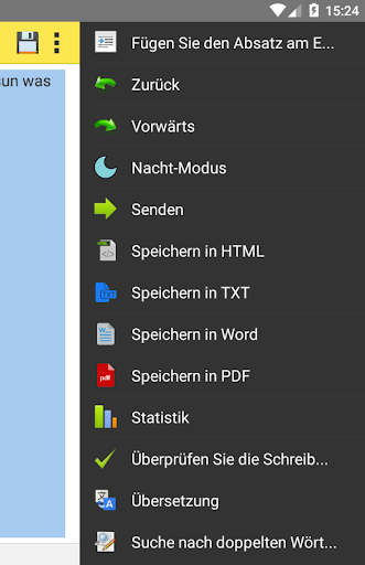* Text kann in verschiedenen Anwendungen gesendet werden: E-Mail, SMS, speichern auf Google Drive, senden an Google Keep, Pocket, Viber und andere apps.