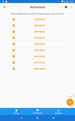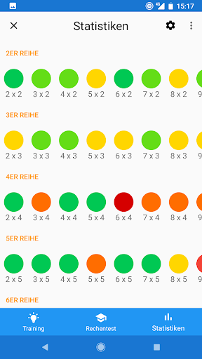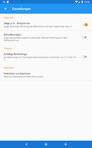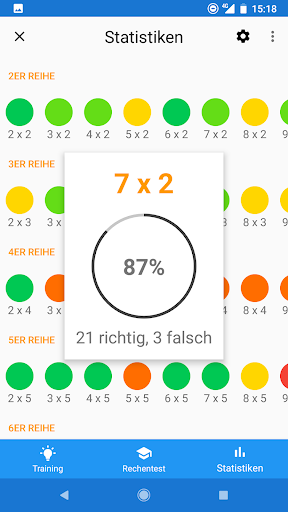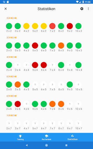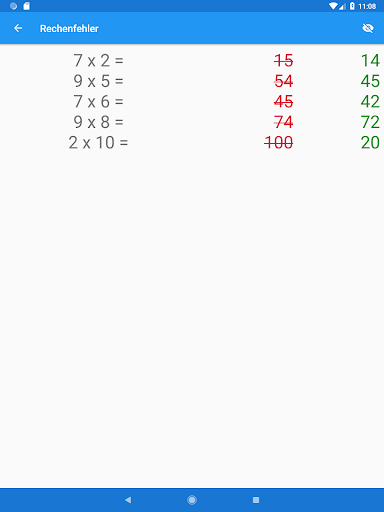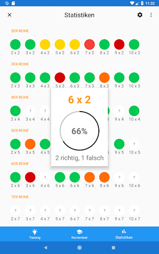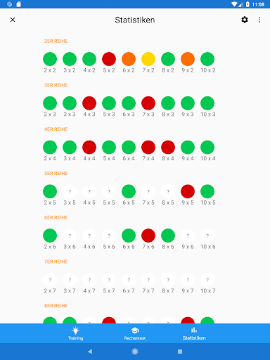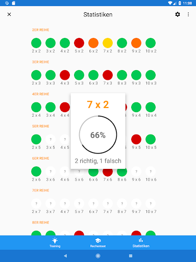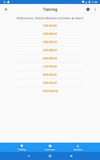 Diese schlanke, im Material Design programmierte App hilft dabei das Einmaleins zu erlernen. Es gibt zwei verfügbare Modi. Im Trainingsmodus kann eine einzelne Malreihe gezielt geübt werden. Im Rechentest-Modus können aus einer Liste Malreihen ausgewählt werden, die anschließend in einer Art Test abgefragt werden. In beiden Modi kann danach Einblick auf die falschen Ergebnisse mit den dazugehörigen Korrekturen genommen werden. Der Statistik-Bildschirm gibt detaillierte Informationen, wie oft jede einzelne Rechnung richtig und falsch gelöst wurde, und stellt diese übersichtlich nach einer Farbskala dar.