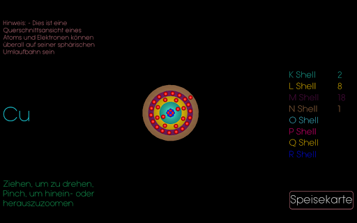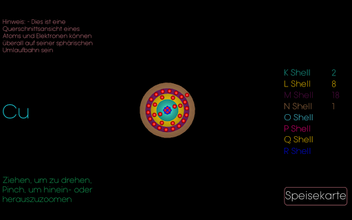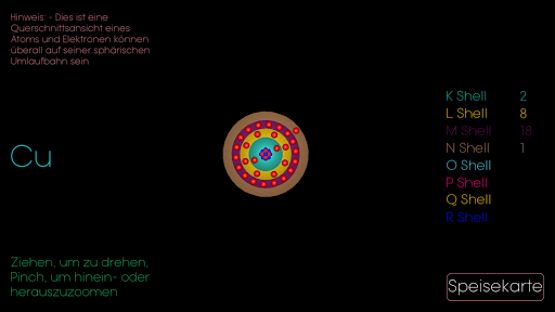 Mit ChemEx 3D können Sie die atomaren Strukturen wie Elektronen, in denen sich das Orbital befindet, und die Art und Weise, wie die Orbitale um den Kern herum organisiert sind, visualisieren.