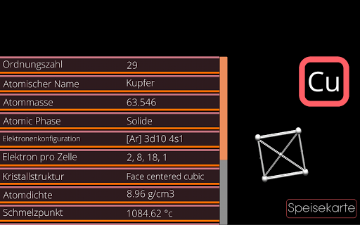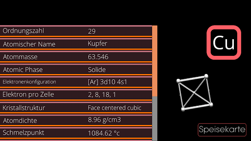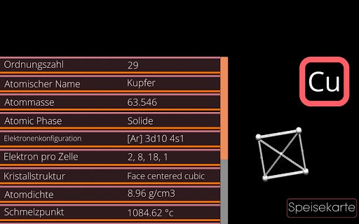 - Wenn Sie auf Periodensystem klicken, werden Informationen zu den unten aufgeführten Elementen angezeigt.
