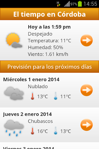 ¿Eres cordobés y quieres saber de una manera fácil y rápida el estado del tiempo? Esta aplicación muestra el tiempo que hace en Córdoba (España), mostrando también la previsión para los siguientes cuatro días.