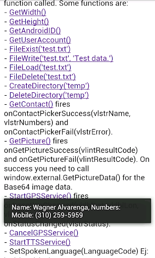 - GetCONTACT () FIRES ONCONTACTPickerSuccess (Vlstrname, Vlstrnumbers) und OnContactPickerFail (Vlstrerror).
