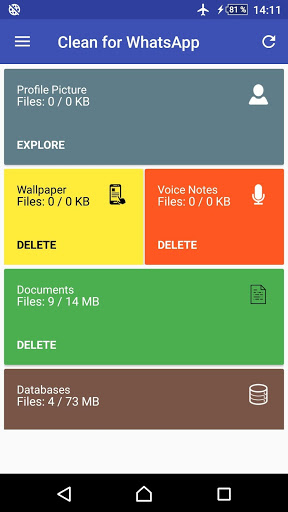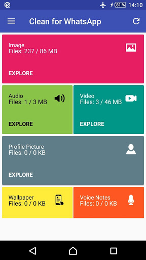 Clean for WhatsApp is a tool that helps you to delete the files of images, videos, voice notes, wallpapers and images of profiles, to obtain more space, to save storage capacity and to eliminate the inaccurate files.