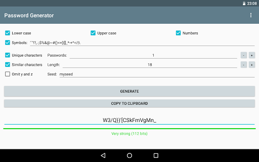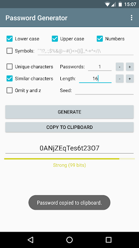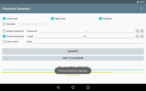 Password Generator ist eine Open-Source-App zum Generieren sicherer Passwörter mithilfe eines kryptografisch sicheren Pseudozufallszahlengenerators.Sie haben die Möglichkeit auszuwählen, welche Zeichen Ihr Passwort enthalten soll, oder Sie können Ihren Satz benutzerdefinierter Symbole auswählen.Das Generieren von Passwörtern mit dem Passwort-Generator ist schnell und einfach. Überprüfen Sie einfach die Optionen und klicken Sie auf eine Schaltfläche.