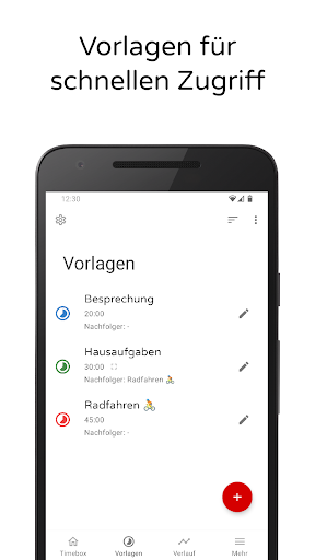 Nutze den Timebox Timer zuhause, für alltägliche Arbeiten wie Kochen, Lernen oder Sport. Mit der Wiederholen Funktion auch prima geeignet für Gesellschafts- und Brettspiele.