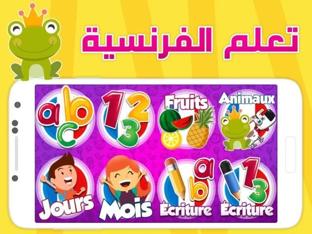 Teaching the French alphabet helps children to acquire knowledge and concepts of fun and interesting way, and train them on the correct pronunciation of the French language, it contains songs teaching meaningful addition to many games for the development of skills and mental abilities and develop intelligence, designed with high quality and wonderful colors attract the child and make it benefit from it grainy and interesting way.