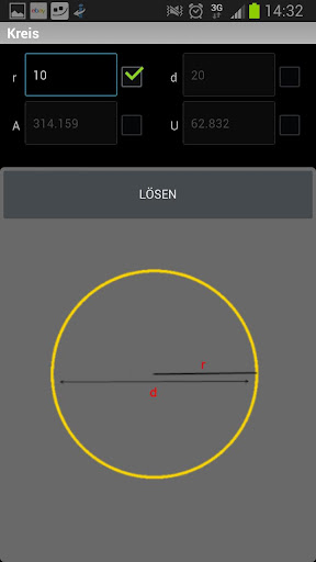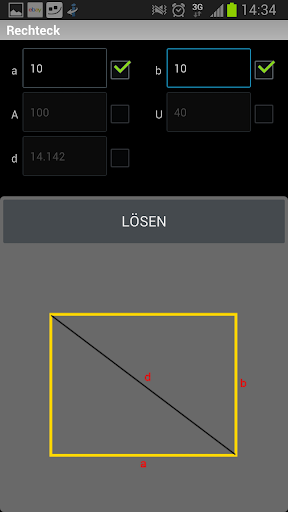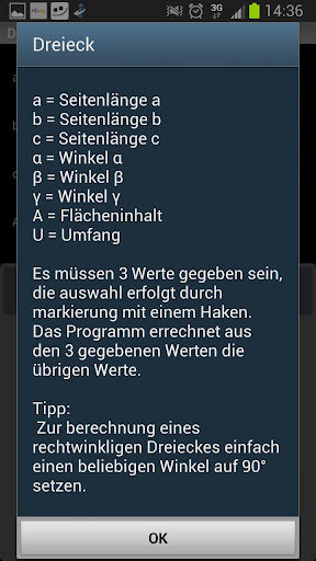z.B. die Seitenlängen eines Dreieckes. Die App kann jetzt die Übrigen Werte wie Flächeninhalt und Umfang sowie die Winkel des Dreiecks berechnen.
