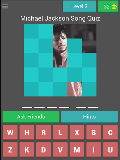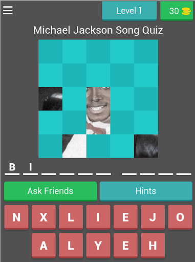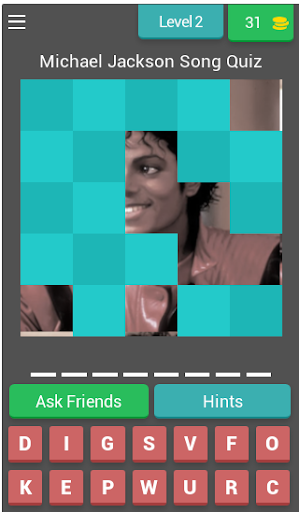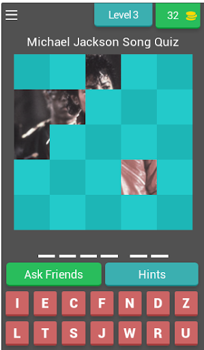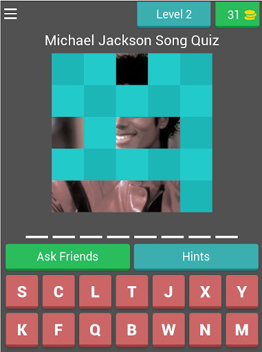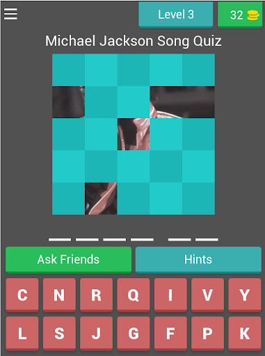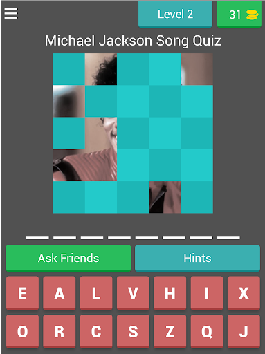 zu spielen Das Quiz klickt einfach auf die Fliese, um das Bild aufzudecken und den Namen des Songs zu erraten. Sie können die unten angezeigten Buchstaben verwenden! Versuchen Sie, so wenig Fliesen wie möglich aufzudecken! Auf einer Ebene stecken? Sie können Hinweise verwenden oder Ihre Freunde nach Hilfe bitten! Mit unserer App auf Social Media teilen, wird Ihnen helfen, mehr Münzen zu erhalten!