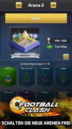 Gewinnen Sie Trophäen, um neue Levels freizuspielen, erhalten Sie Zugang zu verschiedenen Arenen und neuen Elitespielern mit einzigartigen speziellen Fähigkeiten.