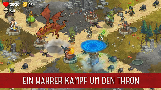 Als Krieger lässt du Türme und Geschütztürme für dich kämpfen - Setze Bogenschützen zur Verteidigung deines Throns ein!