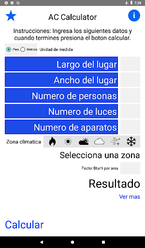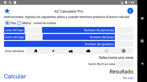 Ahora es Fácil, solo tendrá que tomar unos segundos de su tiempo respondiendo unas preguntas y la AC Calculator le dirá que tipo de aire acondicionado necesita junto con los BTU/h y todo segun los datos que ingreso.