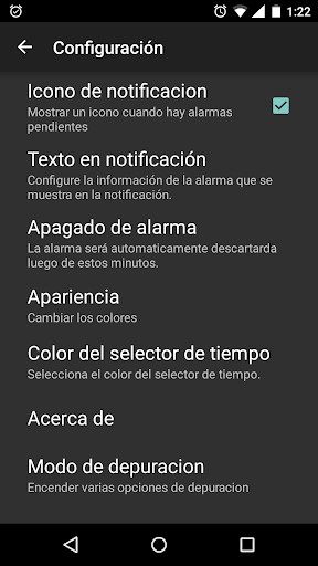 notificaciones con el tiempo antes de que la siguiente alarma se