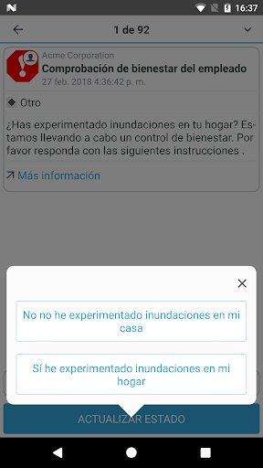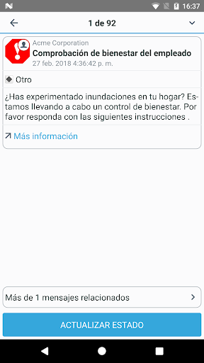 Durante un evento, los usuarios pueden recibir alertas críticas y compartir fácilmente fotografías y vídeos realizados a nivel de campo con sus centros de operaciones para mejorar el conocimiento de la situación en toda la organización. Los usuarios también pueden enviar alarmas de coacción con un solo clic e incluso compartir su posición GPS en tiempo real para dar a conocer su ubicación