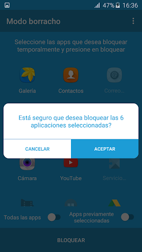 3) Confirmar que quieres bloquear las aplicaciones seleccionadas