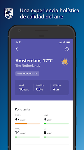 Junto con el dispositivo Philips Air conectado, Air proporciona una experiencia inteligente que garantiza que respiras aire limpio y saludable.