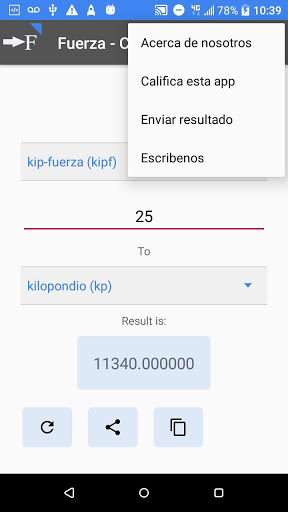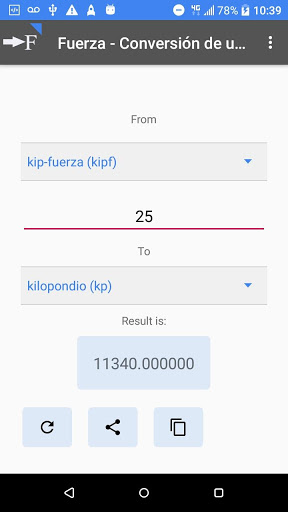 Aplicativo para la rápida y fácil conversión de unidades de fuerza: