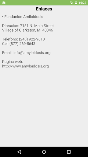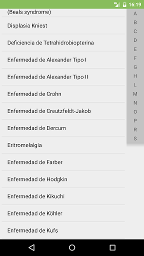 - Otro módulo destinado a encontrar el contacto (teléfono, nombre, dirección, correo electrónico y sitio web) de muchas instituciones que tratan estas enfermedades raras, catalogadas por el nombre de la enfermedad.