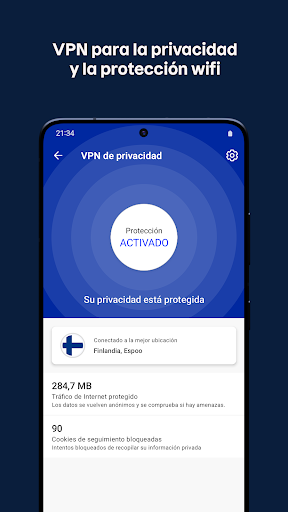 Conéctese a cualquier punto de acceso Wi-Fi con seguridad, gracias a una VPN que mantiene su navegación privada. La VPN protege su dirección IP y bloquea los intentos de seguimiento. Con una VPN puede seleccionar una ubicación virtual y cifrar el tráfico para navegar de forma segura y privada. Nuestra VPN con conexión rápida e ilimitada es su partner de privacidad, tanto en casa como fuera. Además, es muy intuitiva.