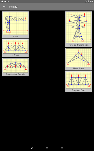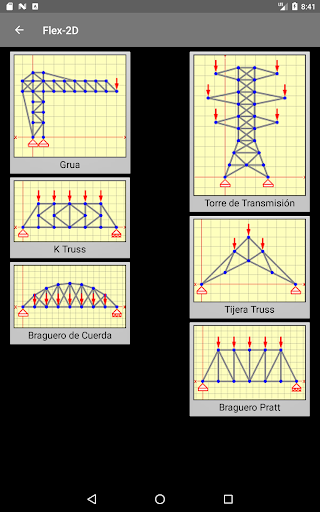 Las plantillas están disponibles para la creación rápida de estructuras de celosía comunes, como puentes y techos. También se incluyen modelos de muestra de varios tipos de estructuras.