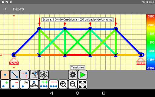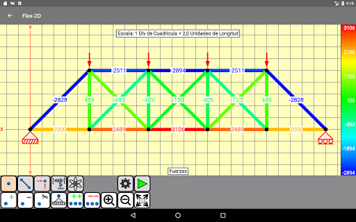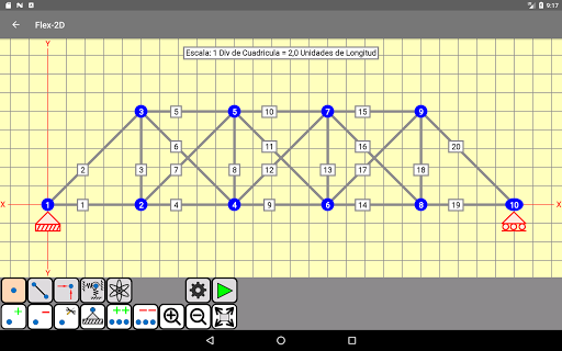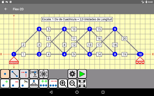 Flex-2D realiza un análisis estático lineal de estructuras de celosía planas utilizando el método de elementos finitos. Es de uso general en alcance y fácil de usar. Se puede obtener una solución de problemas de tamaño pequeño a moderado. Fue desarrollado para ser utilizado por ingenieros de diseño, estudiantes de ingeniería civil, estructural y mecánica, y profesionales experimentados que desean soluciones rápidas y precisas para una amplia variedad de problemas.