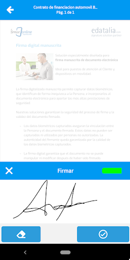 Puedes realizar la autofirma (firmar tus propios documentos) y la firma en persona (solicitar a otra persona que te firme). Sin anuncios. Desde donde quieras. Sin conexión a internet.