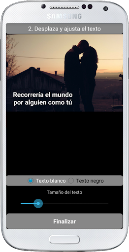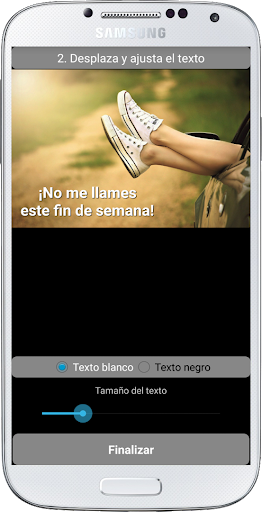 - Selecciona una imagen de tu galería o del menú de categorías: alegría, amor, humor, etc...
