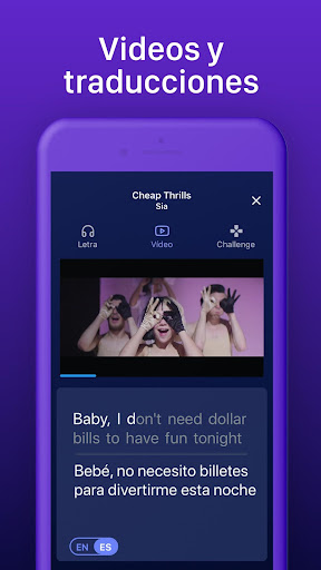 - Vídeos musicales con la letra sincronizada en Inglés y Español.